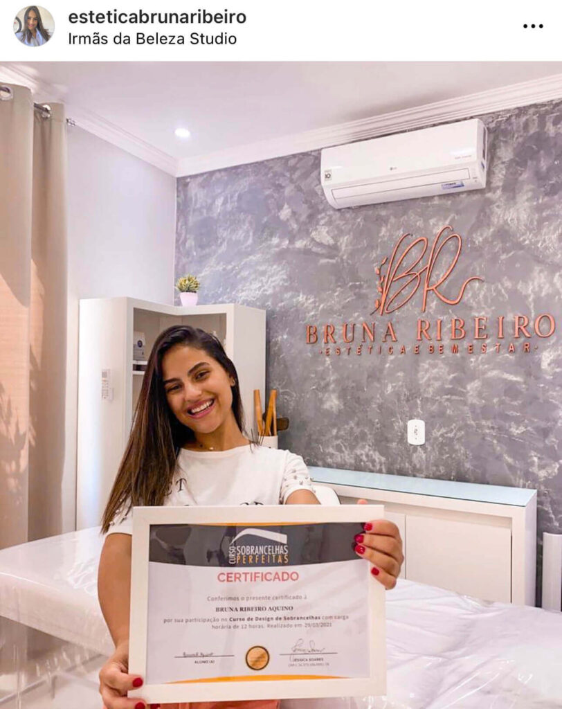 Hoje, através do seu método dentro do curso de design de sobrancelhas, ela já impactou mais de 80.000 alunas, ajudando mulheres a conquistarem independência financeira e uma nova realidade profissional.